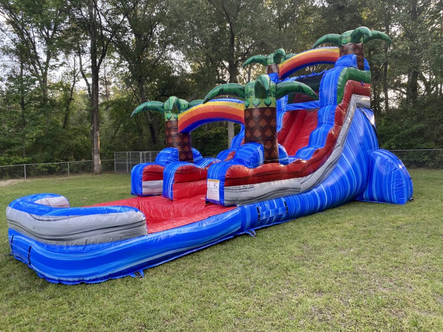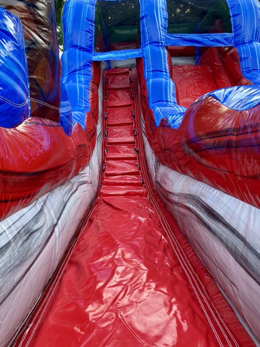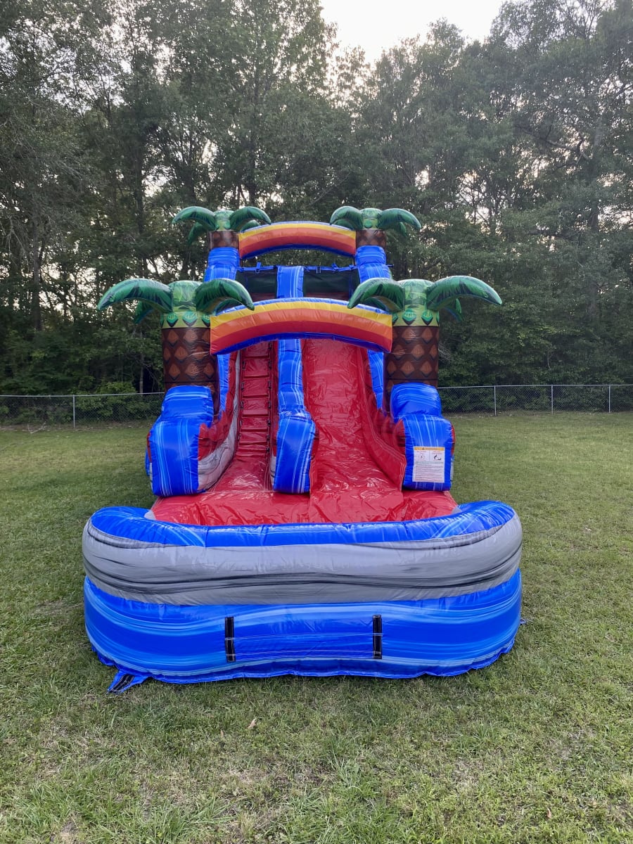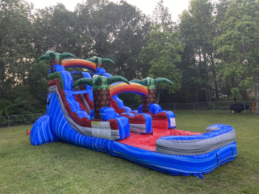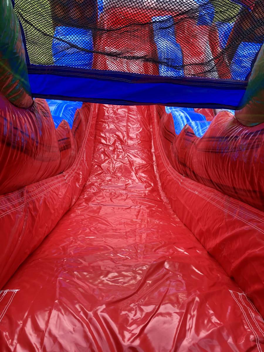 16 Ft Baja Splash is our perfect sized waterslide to accommodate both small and big children. Also fits in those smaller yards that typically our bigger units would not. Features a nice deep pool where kids will come zooming down and splash into. The colors on this unit are very vibrant and will definitely catch your guests and neighbors eyes! This slide has surely received plenty of attention/bookings so act fast and dont't let someone beat you to your date.
